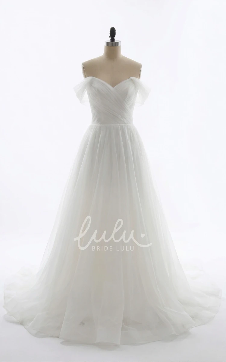 A-Line Off Shoulder Tulle Wedding Dress Romantic Sweetheart Princess Gown with Lace-up Back