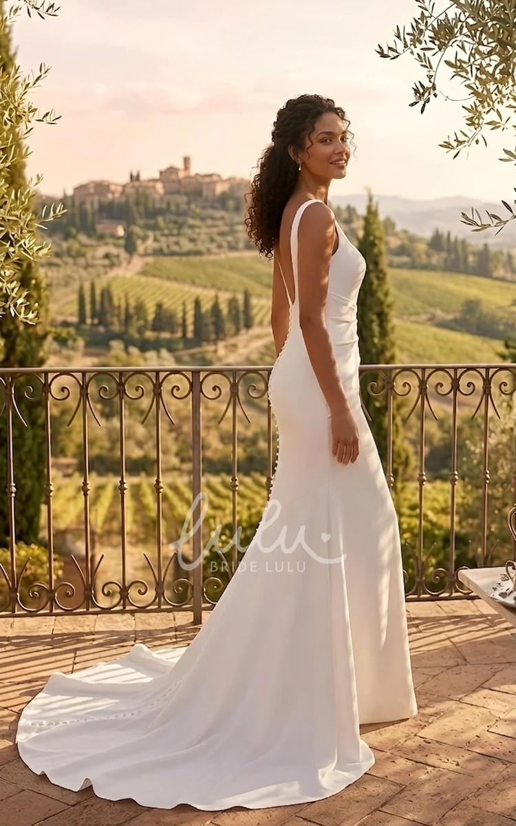 Mermaid Simple Square Neck Satin Wedding Dress Modern Sleeveless Solid Pleated Bridal Gown
