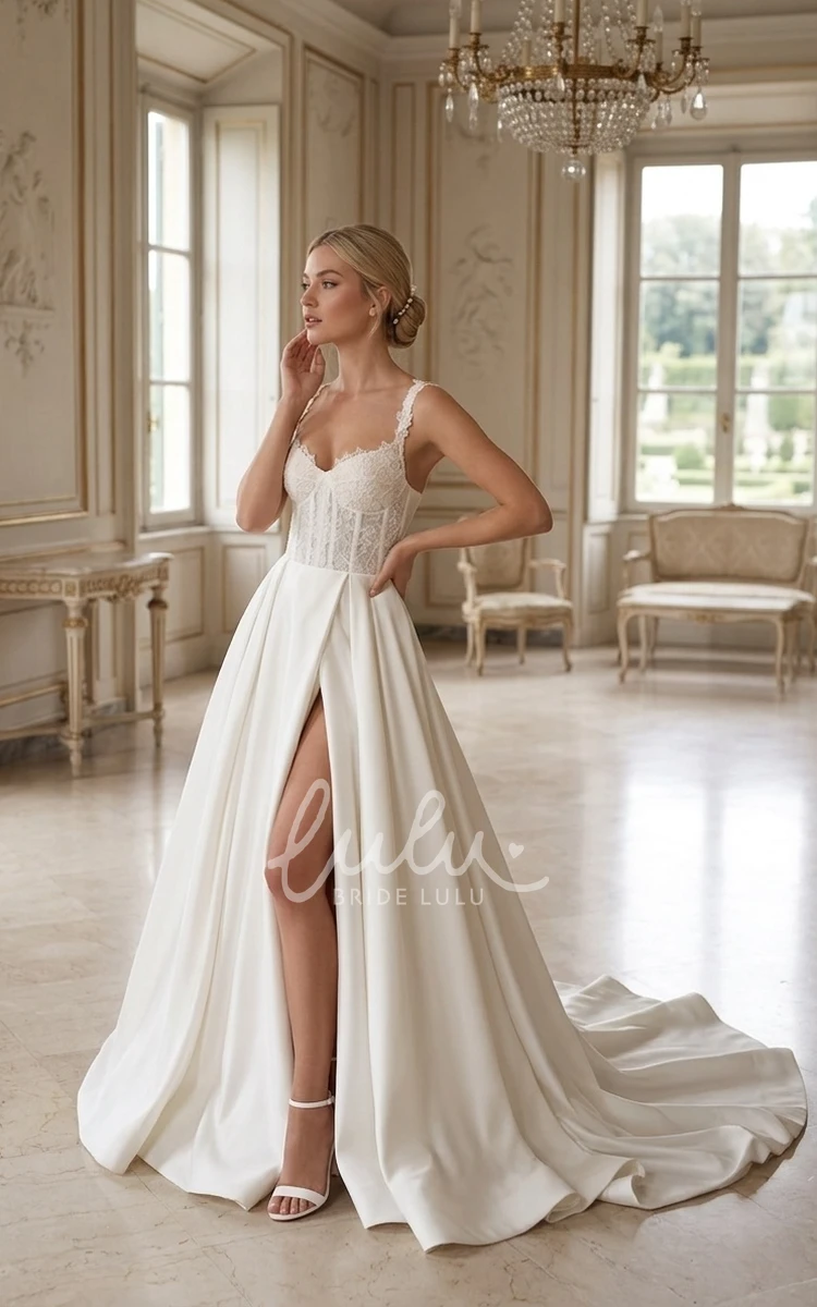 Modern A-Line Boho Lace Sleevesless Spring Wedding Dress Elegant Beach Corset Back Bridal Gown with Applique