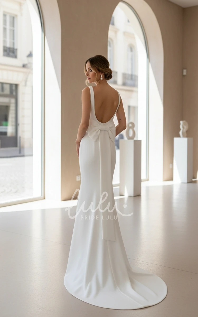 Modern Square Neck Backless Wedding Dress Simple Sleeveless Bow White Bridal Gown