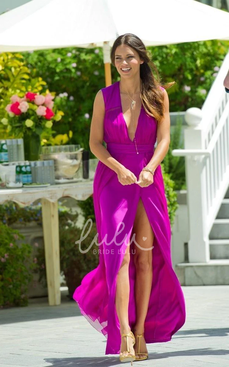 V-neck Chiffon A-Line Prom Dress Boho & Casual Prom Dress