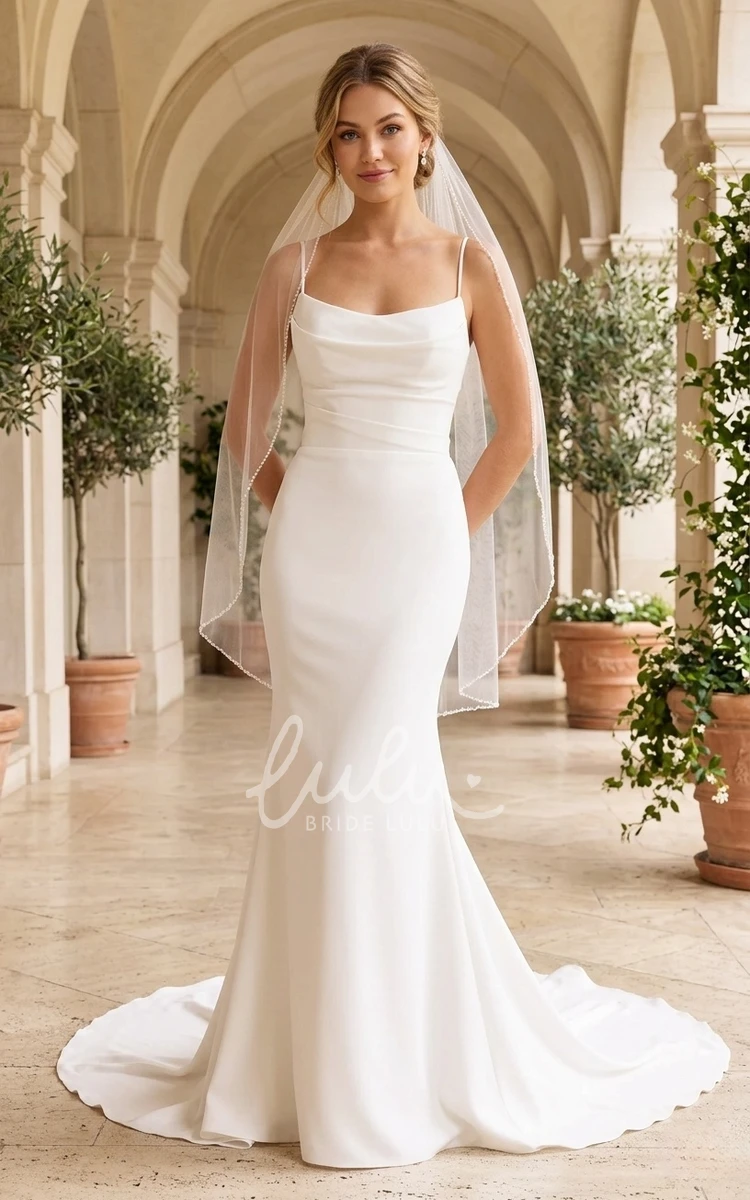 Sexy Minimalist Mermaid Spaghetti Straps Spring Wedding Dress Beach Country Cowl Neckline Bridal Gown with Train